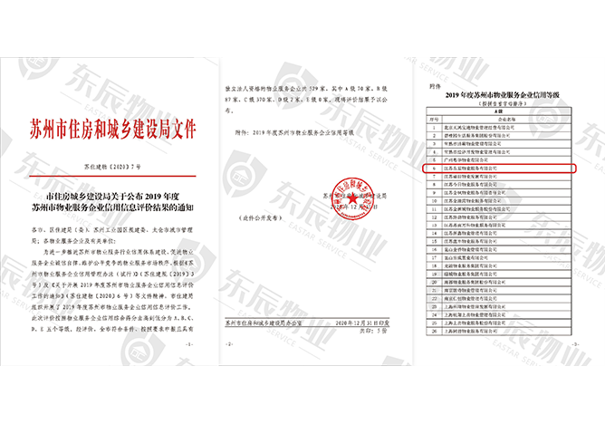 • 2019年度蘇州市物業(yè)服務(wù)企業(yè)信用等級(jí)A級(jí)