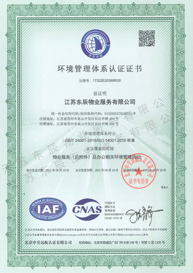 • 2022-2025年環(huán)境管理體系認(rèn)證證書