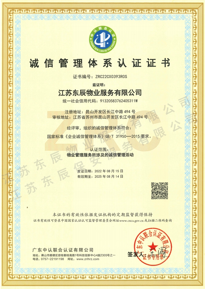 • 2022-2025年誠(chéng)信管理體系認(rèn)證證書